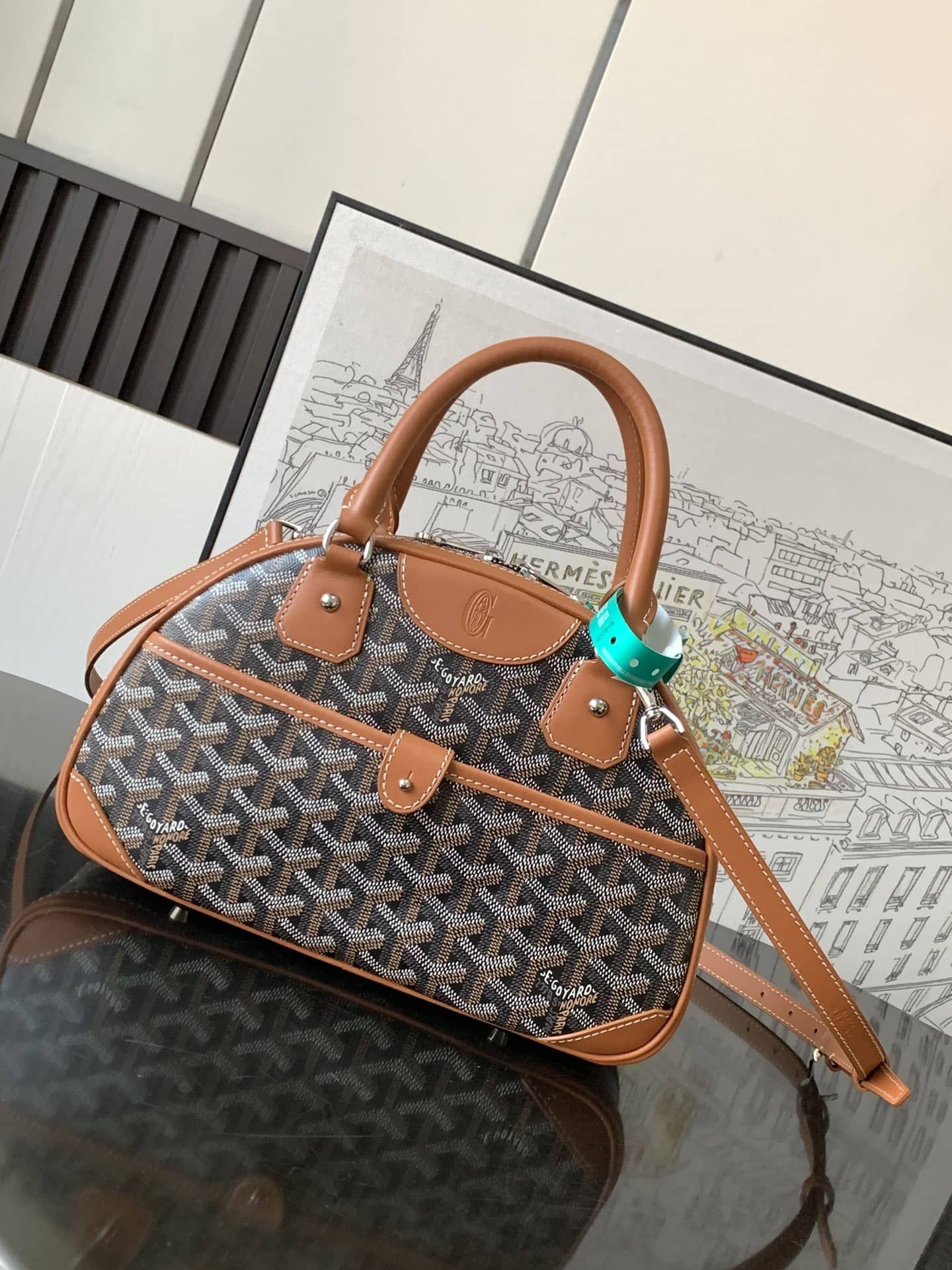 Goyard خمر حقيبة البولينغ بلاك اند تان