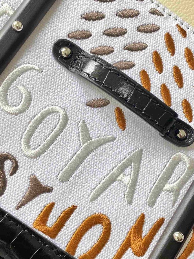 Den Saïgon taske er en af Maison Goyard symbolske i stykker, som det arver alle vores kuffert-gør signatur-koder som træ stave, læder hjørner og kuffert nitter. I denne strukturerede, miniature-format, Saïgon taske kan bæres med eller uden en rem til en smart og elegant stil.