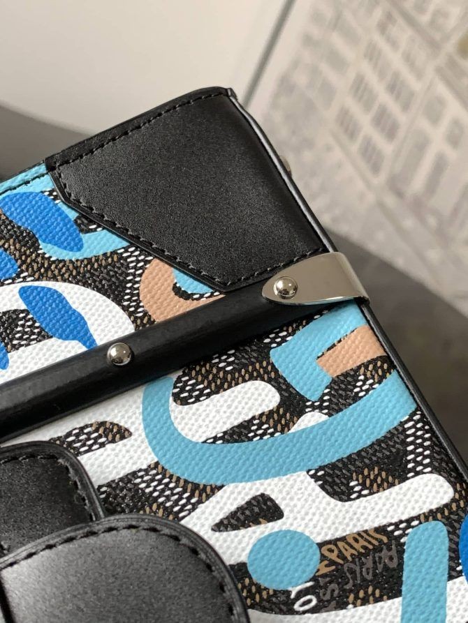 Goyard Saigon Struktur Taske Lettres Blå Camouflage Motiv Palladium Hardware