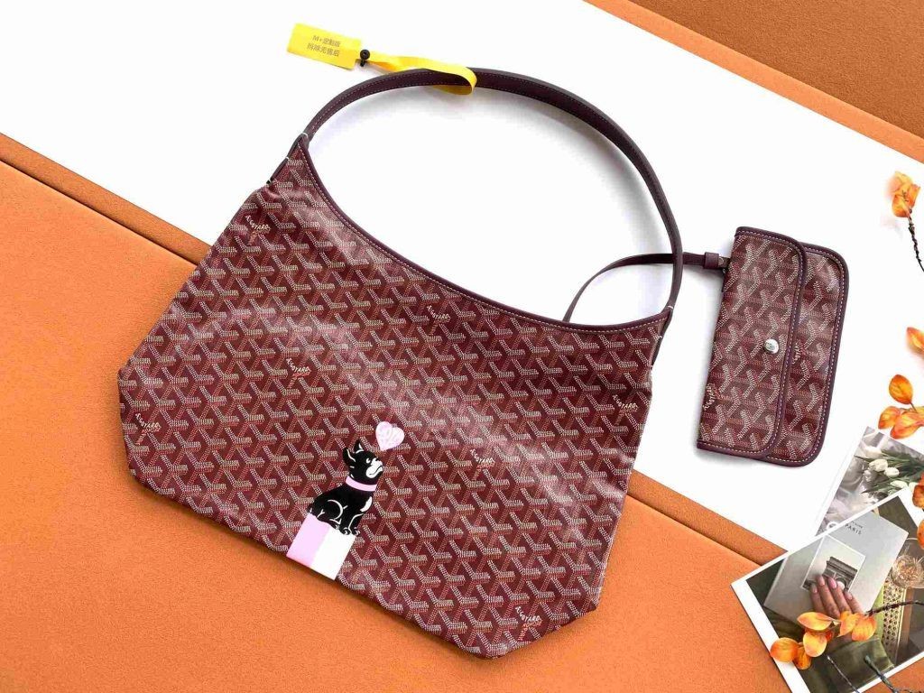 Goyard Bohème Hobo Bag Mit Heart & French Bulldog Burgundy