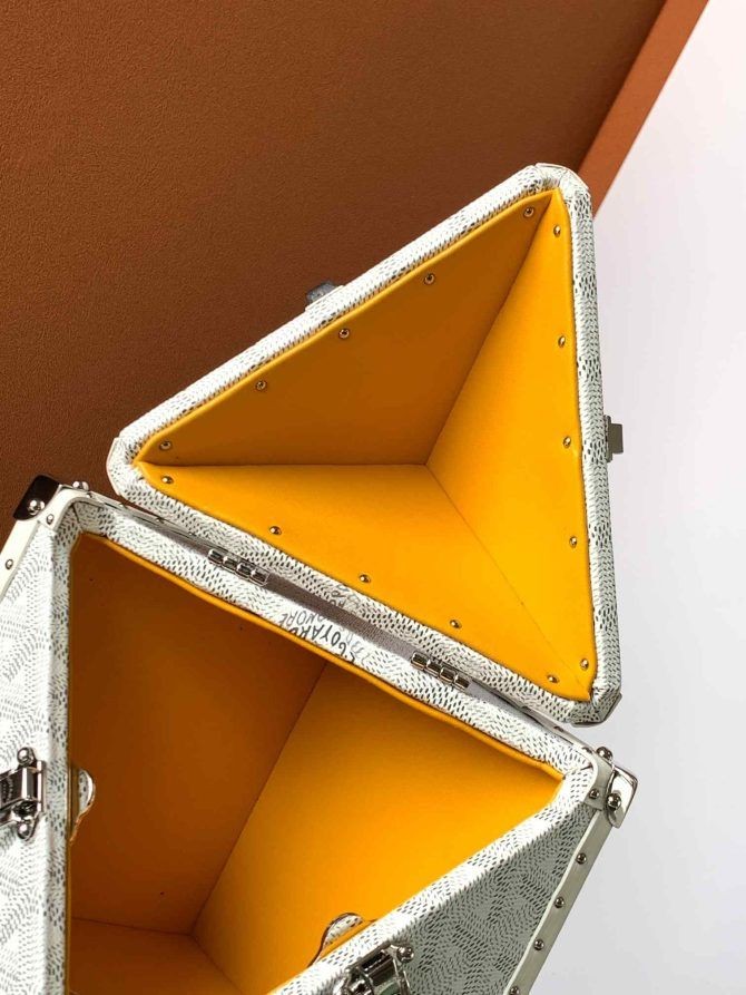 Das Dé-trunk-Tasche verkörpert in einer innovativen Art und Weise die Zeitlosigkeit von zwei Maison Goyard, wie-weiß: Kofferraum zu machen und Leder gut machen. Dank der zwei Schnallen und kompakte Größe, es ist ideal, um sicher zu halten evening essentials. Verziert mit einer Handschlaufe, die Dé-trunk-Tasche kann getragen werden durch hand.