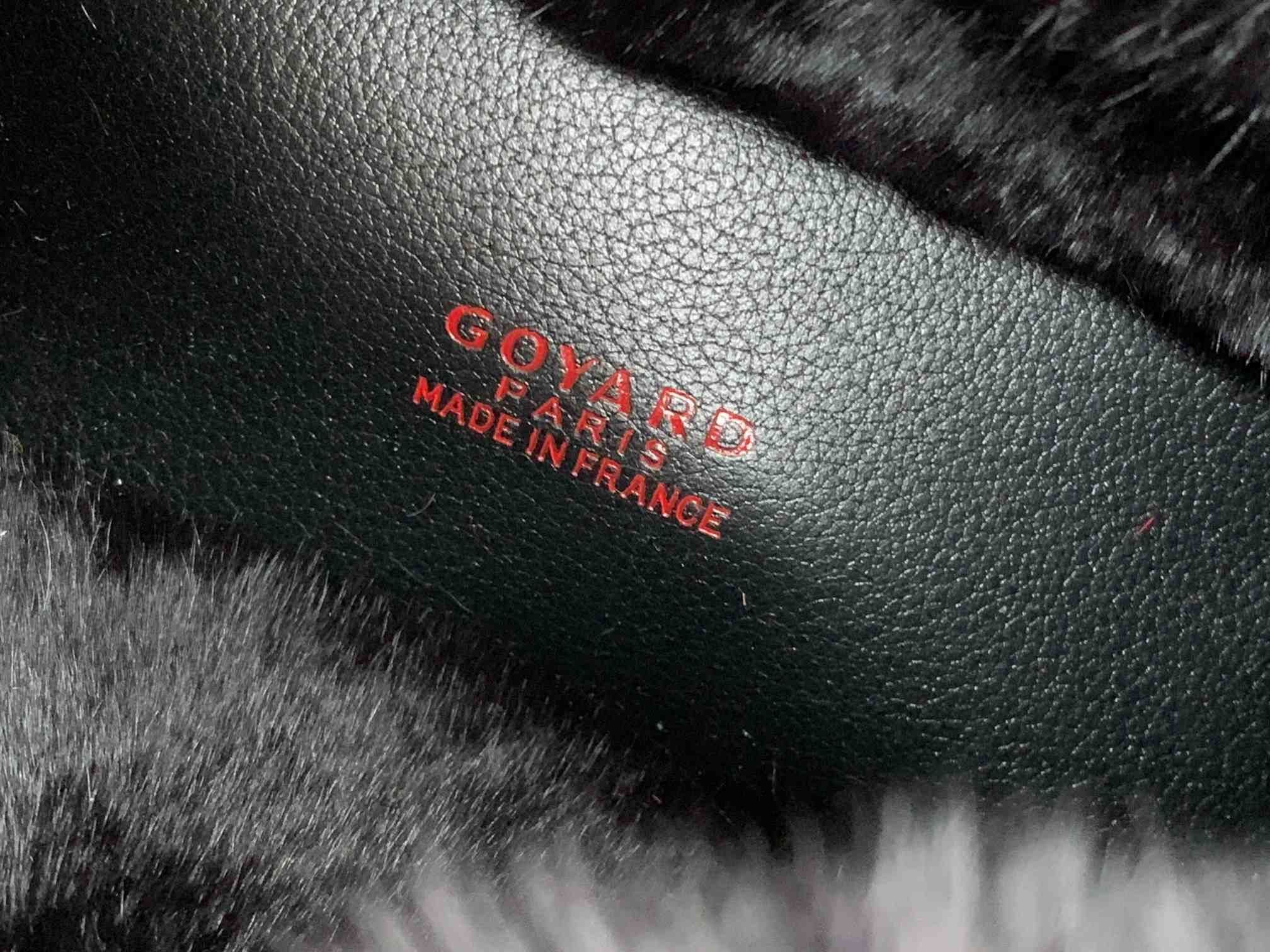 Dies ist ein Goyard Goyardine Rex Kaninchen Pelz Reversible Mini Anjou in Schwarz. Diese zierliche, reversible Tasche ist gefertigt aus einem traditionellen Goyard " chevron Monogramm auf schwarz beschichtetem canvas mit Kaninchenfell. Die Tasche verfügt über schwarze Leder trim und top verarbeitet. Die top öffnet sich zu einem schwarzen Pelz innen mit einem abnehmbaren Beutel.