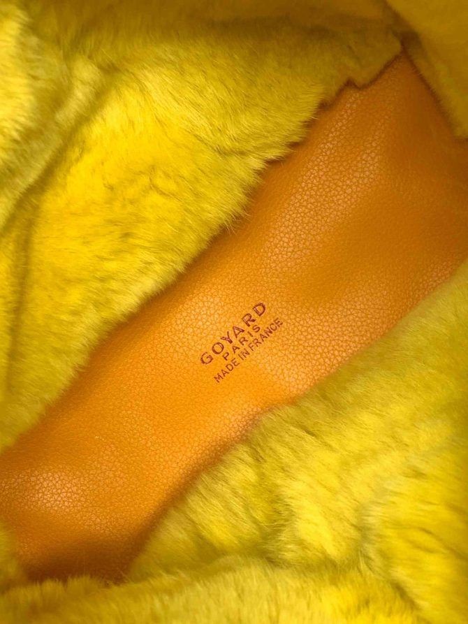 είναι ένα Goyard Goyardine Κουνέλι Rex Γούνα Αναστρέψιμη Μίνι Ανζού σε Μαύρο χρώμα. Αυτό το petite, αναστρέψιμη tote είναι κατασκευασμένο από ένα παραδοσιακό Goyard chevron μονόγραμμα σε μαύρο καμβά που ντύνεται με τη γούνα Κουνελιών. Η tote χαρακτηριστικά μαύρο δέρμα στα τελειώματα και τοπ λαβές. Η οροφή ανοίγει σε μια μαύρη γούνα εσωτερικά με μια μετακινούμενη σακούλα.