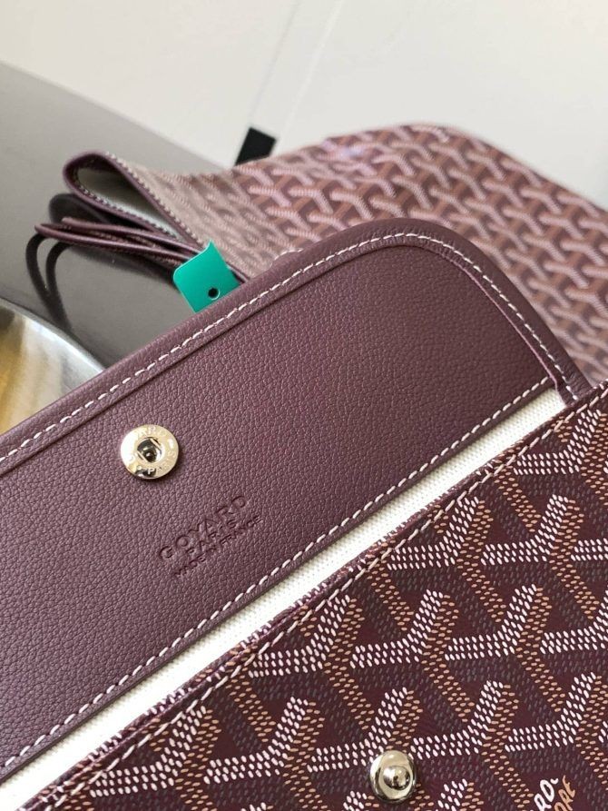 The Saint Louis PM bag is made from Goyardine and is unlined. It is extremely light and completely reversible. Wear it showing the Goyardine fabric or inside out, showing the linen and cotton mix. Its two leather handles with their progressive thickness mean it can be worn in different ways. It has a removable inside pocket attached to one of the handles for quick and easy access.