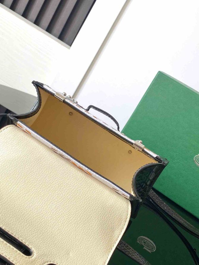 Se Saïgon laukku on yksi Maison Goyard on vertauskuvallinen kappaletta kuin se perii kaikki runko-making allekirjoitusta koodien kuten puu-patukat, nahka kulmat ja runko niitit. Tässä jäsennelty, miniatyyri-muodossa, Saïgon laukku voi olla kulunut kanssa tai ilman hihnaa, tyylikäs ja elegantti tyyli.