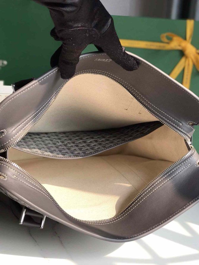compact et vertical de la forme de la Bourgogne sac, ses confortables poignées rondes en cuir et sa double fermeture zip garder le contenu et sécuritaire en faire une smart et décontracté unisexe sac. Il y a un espace spécifique pour un journal ou un parapluie sur l'extérieur grâce à l'astucieux des lanières de cuir sur le côté.