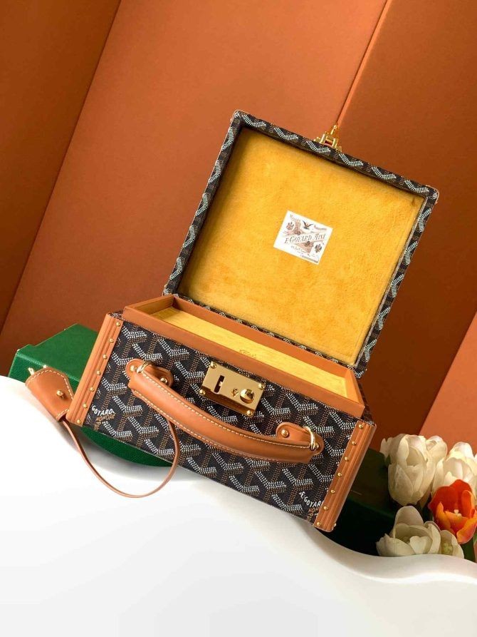 An Joux cás ar chás le haghaidh 6 uaireadóirí deartha leis an trunk-a dhéanamh ar an saineolas agus mar sin daor chun an Maison Goyard. Tá sé spreagtha ag ár watch cás i trunk agus leagan idirmheánach méid idir an 4 agus 8 watch cás.