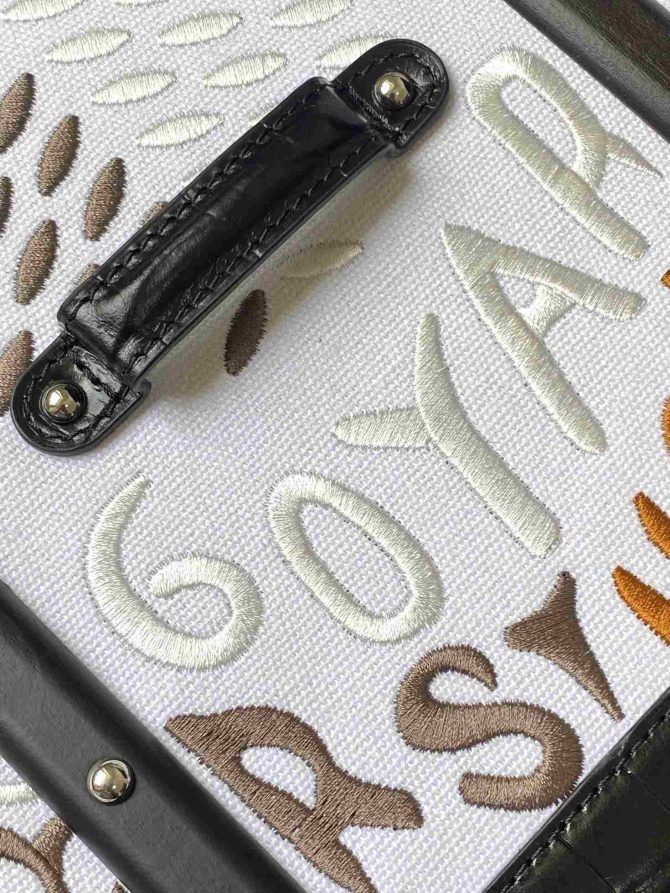 Goyard Saïgon PM Mála Crogall Leathar Dubh Bróidnithe