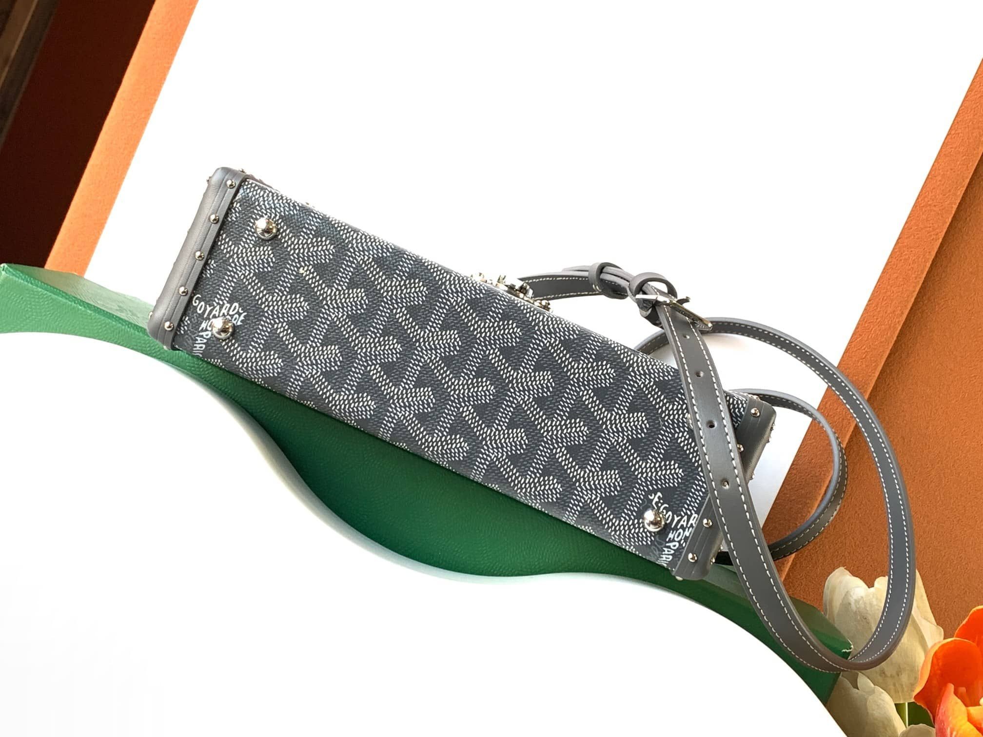 The Cassette Trunk expresses the innovative timelessness typical of Goyard, and stems from the Maison’s seminal trades: trunk making and leather goods. Thanks to its clasp and compact size, its ideal for keeping everyday essentials safe and combines elegance, refinement and a lightness. Thanks to its additional strap, the bag can be worn in several different ways.