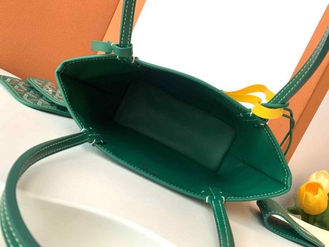 Az Anjou Mini táska, bólintott, hogy az emblematikus Saint Louis táskát, de a bőr verzió bélelt Goyardine. Két különböző stílus, de úgy néz ki. A fogantyúk a progresszív vastagság, hogy könnyű tartani, valamint kényelmes szállítására. Köszönhetően a miniatűr méret, az Anjou-Mini táska ideális az esti, illetve gondoskodik a szükséges holmiját a nap folyamán.