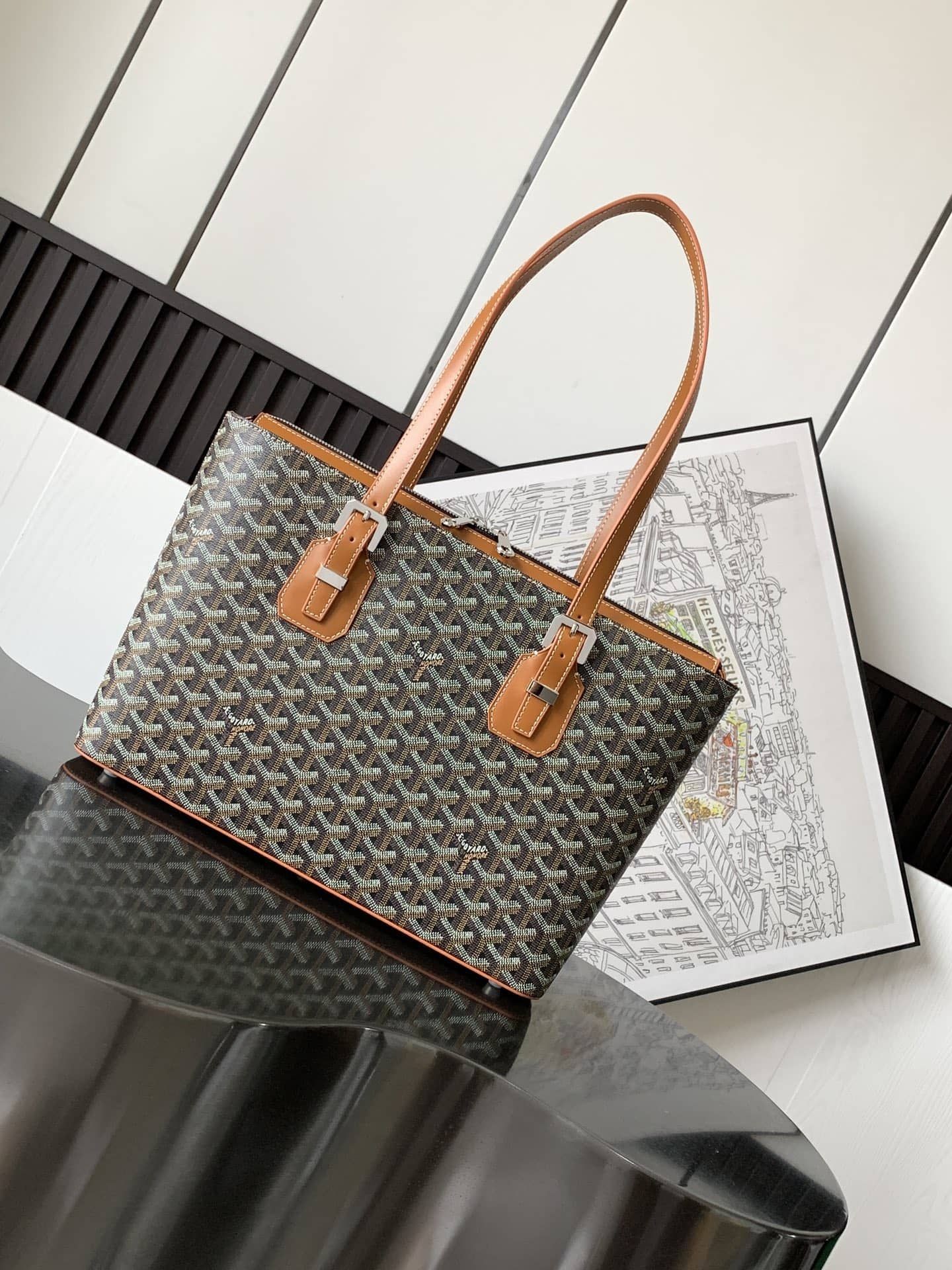 Goyard középkorú táska, divatos, retro egyetlen termék aktatáskát, egyszerű, de elegáns design, dupla cipzárral nyílik, belső rekesz táska, tok cipzárral, állítható fogantyú válthat a használat módja, függetlenül attól, hogy kézi -, váll -, vagy hónalj nyugi!