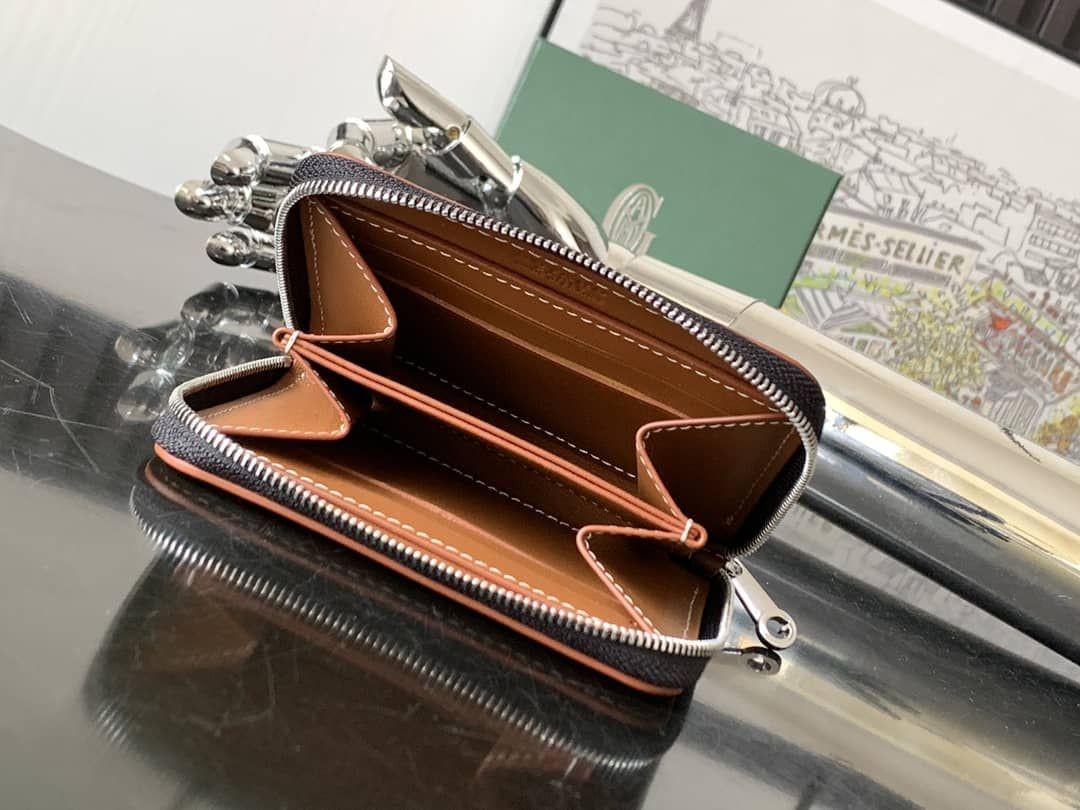 e Matignon Mini portafoglio è fissato con la sua chiusura a zip. La sua parte centrale è per il cambiamento, mentre la parte interna piatta tasca per le carte e le ricevute.