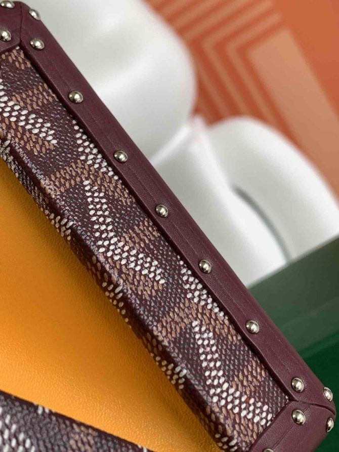 La Minaudière trunk bag è un tronco e una pochette allo stesso tempo. Pratico e leggero, può essere indossato con o senza cinturino. Il cinturino è in forma di chevron dal nostro Goyardine tessuto.