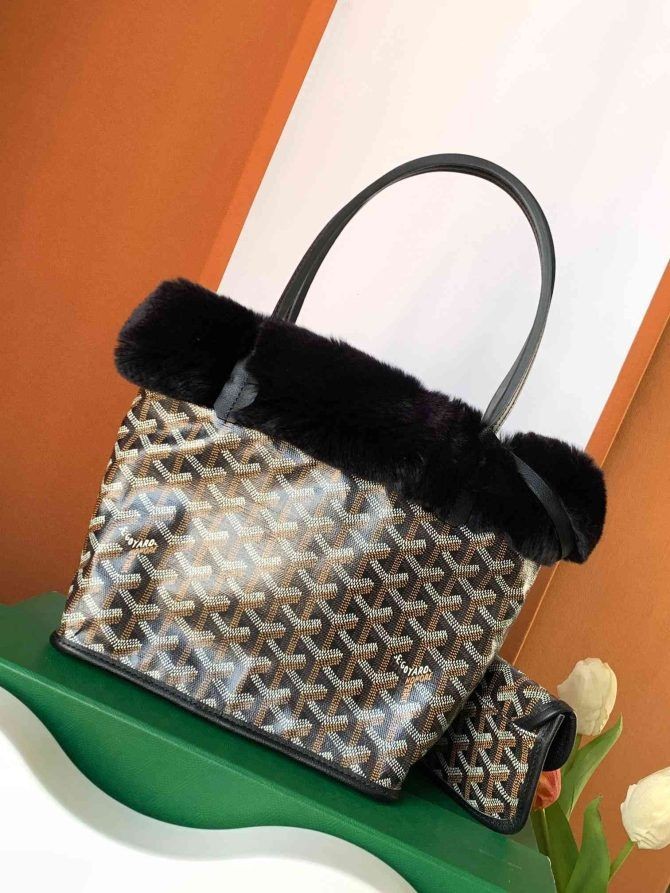Goyardうさぎの毛皮のミニトートバッグ黒