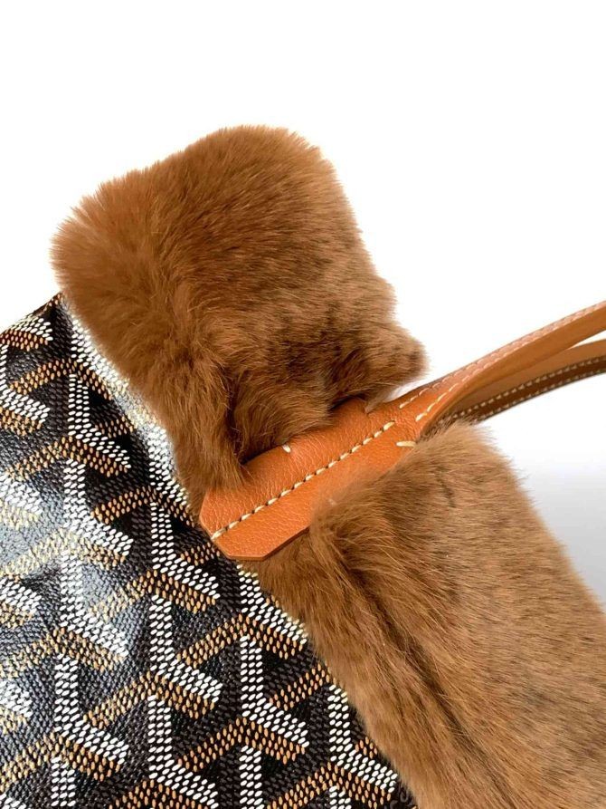 Goyard Rabbit Fur Mini Tote Bag Black & Tan