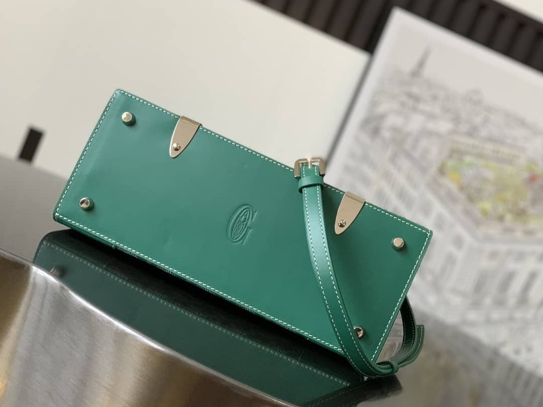 van De Saïgon tas is één van Maison Goyard de karakteristieke stukken als het erft al onze stam-het maken van de handtekening codes, zoals de houten stokken, lederen hoeken en romp klinknagels. In deze gestructureerde PM-indeling, de Saïgon tas kan gedragen worden met of zonder een riem voor een elegant avond stijl.