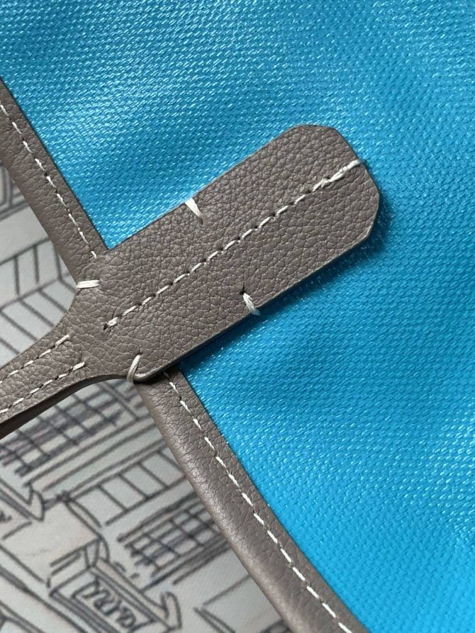 Saint Louis GM veske er laget av Goyardine og er uforet. Det er ekstremt lett og fullstendig reversible. Ha det viser Goyardine stoff eller innsiden ut, som viser lin og bomull blanding. De to lær håndtak med sin progressive tykkelse mener det kan bli slitt på ulike måter. Det har en uttakbar innvendig lomme knyttet til et av håndtakene for rask og enkel tilgang.