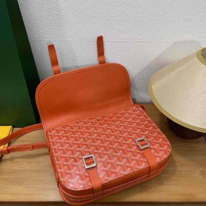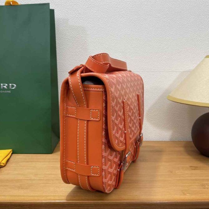 od Goyard duża torba-komunikator na dwóch guzikach wykonana jest w stylu unisex. To torba w stylu retro. Jest wytrzymała i lekka. Długość paska na ramię jest regulowany. Można ją nosić po przekątnej lub na jednym ramieniu. W nim znajdują się dwie małe przegródki i kieszeń na suwak, a sama torba ma dużą pojemność.