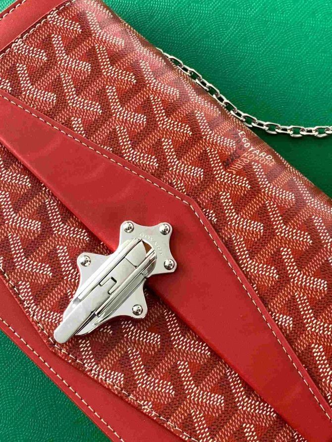 Elegancką i praktyczną torbę Duchess Marie-Caroline można nosić na ramieniu, przez ramię lub do noszenia w ręku dzięki zdejmowanemu paska-łańcuchu. System zamykania zamyka się za pomocą zapięcia, co jest odniesieniem do historycznego know-how Maison Goyard w produkcji skrzyń. Torba Duchess Marie-Caroline idealnie uzupełnia wkładką Louise, ponieważ obie mają taki sam ostry wygląd.