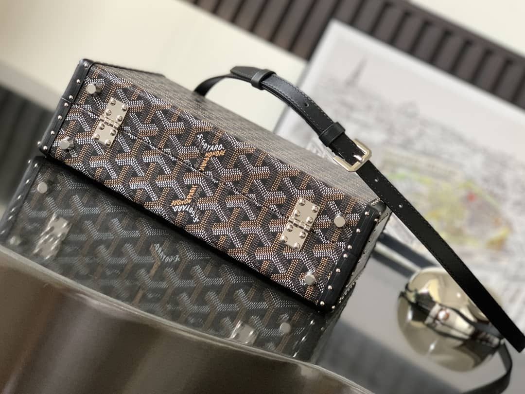 Torba-bagażnik Grand Hôtel oddaje hołd doświadczenia budowy skrzyń, tak drogiego dla Maison Goyard. To idealny rozmiar do przechowywania przedmiotów pierwszej potrzeby, łączy w sobie elegancję, wyrafinowanie i łatwość w dotyku. Dzięki opcjonalnemu paska torbę można nosić na różne sposoby.