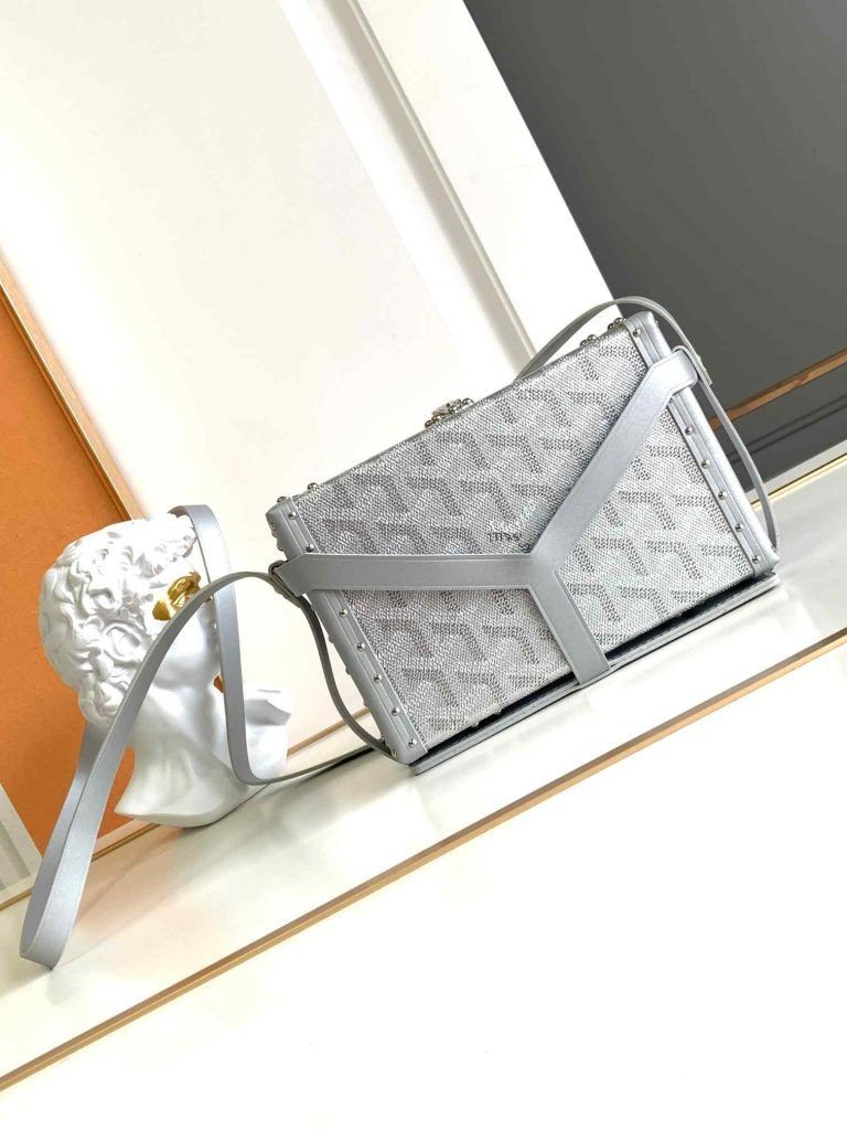 Torba-bagażnik Minaudière to jednocześnie i torba-kufer, i kopertówka. Praktyczny i lekki, można go nosić z paskiem lub bez niego. Pasek wykonany jest w formie wysuwanym z naszej tkanki гоярдин.
