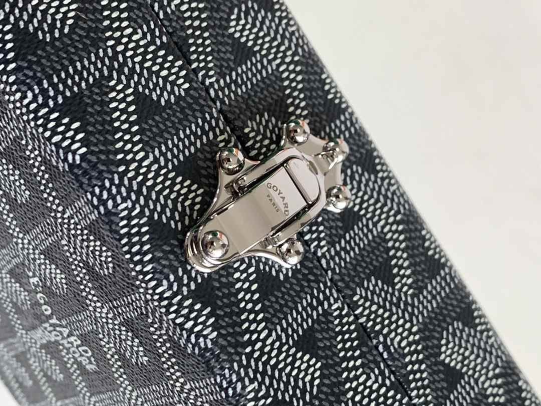 A Minaudière tronco saco é um baú e um saco de embreagem ao mesmo tempo. Prático e leve, ele pode ser usado com ou sem a correia. A pulseira é em forma de divisa do nosso Goyardine tecido.