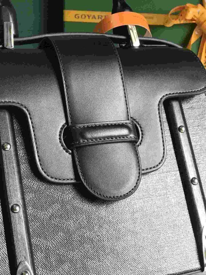De Saïgon geanta este unul dintre Maison Goyard e piese emblematice pentru ca acesta moștenește toate portbagaj luare de semnătură coduri, cum ar fi lemn, bastoane de cauciuc, piele colțuri și portbagaj nituri. În acest structurat PM format, Saïgon geanta poate fi purtat cu sau fără o curea pentru o seara eleganta stil.