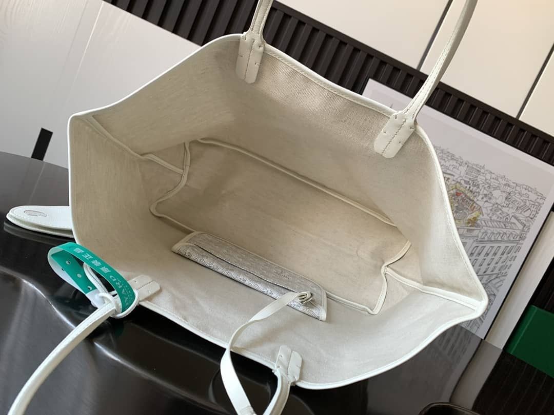 Saint Louis PM geanta este confectionata din Goyardine și este necăptușit. Este extrem de ușor și complet reversibilă. Purta arată Goyardine tesatura sau în afară, arătând lenjerie de bumbac și se amestecă. Cele două mânere din piele cu lor progresivă grosime înseamnă că poate fi purtat în diferite moduri. Are un buzunar interior detașabil atașat la unul dintre mânere pentru acces rapid și ușor.