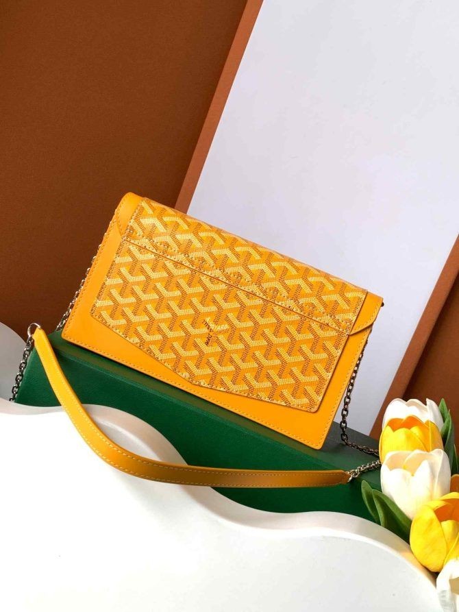 naraz elegantné a praktické, Vojvodkyňa Marie-Caroline vak možno nosiť okolo pleca, cross-body style, alebo vykonať ručne vďaka svojej vymeniteľné reťazca popruh. Jeho ukončení systém je zabezpečený s prackou, poukazujúce na historické batožinového priestoru-čo know-how Maison Goyard. Vojvodkyňa Marie-Caroline taška je ideálne dopĺňa Vložiť Louise, ako zdieľať rovnaké edgy vzhľad.