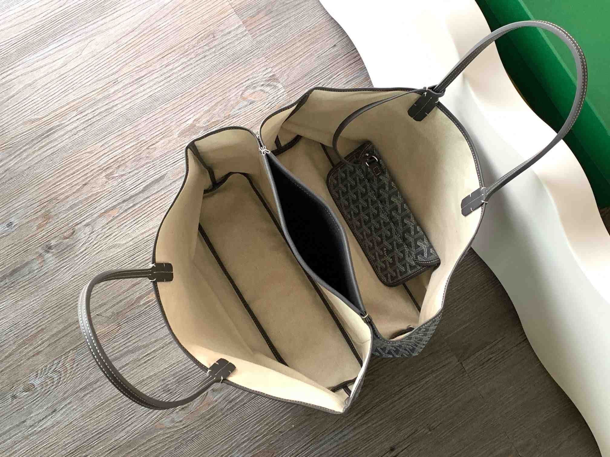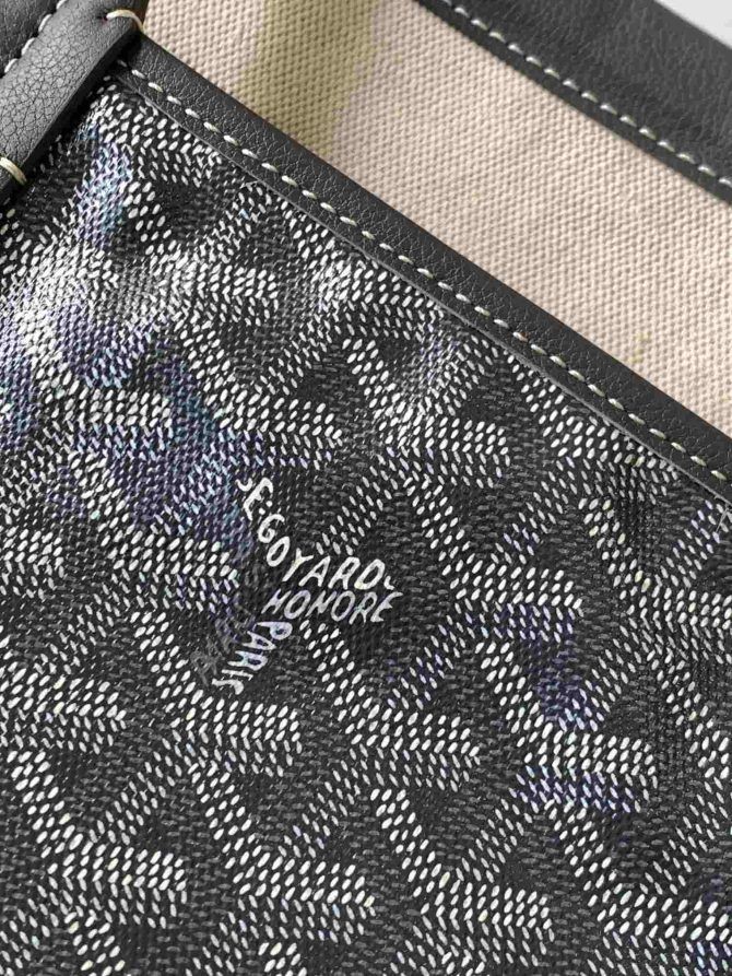 Na Goyard Isabelle Vrece je vyrobené z jedinečného "Maintenue" Goyardine plátno, navrhnuté tak, aby sa udržala jeho dokonalý tvar priebehu času pri zachovaní flexibility a ľahký pocit.