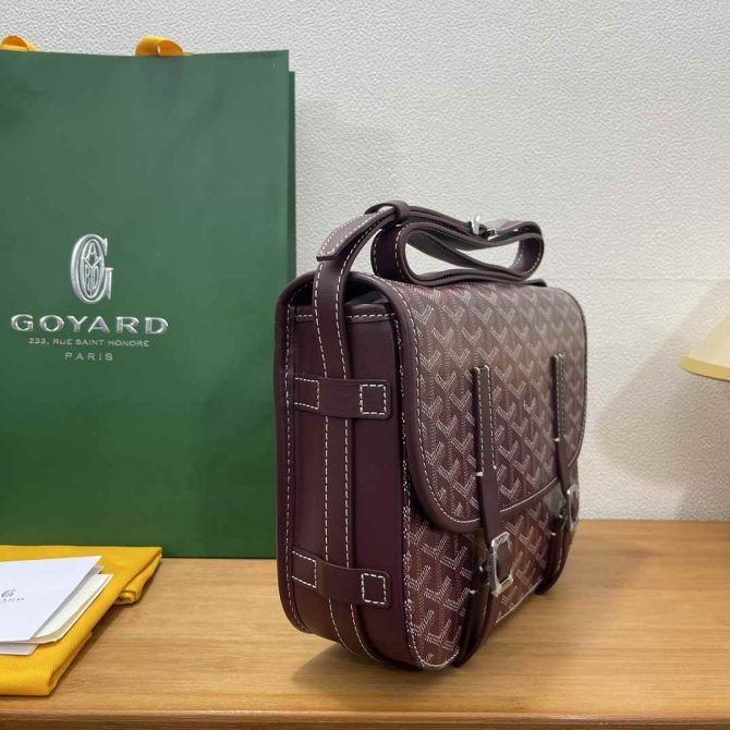 Goyard klassiska dubbel-knappen stor messenger bag är unisex. Det är en väska med en retro stil och fräschör. Det är slitstarkt och lätt. Längden på axelremmen är justerbar. Det kan bäras snett eller på ena axeln. Det innehåller två finns Det ett litet fack och dragkedja fack, och väskan i sig har en stor kapacitet.