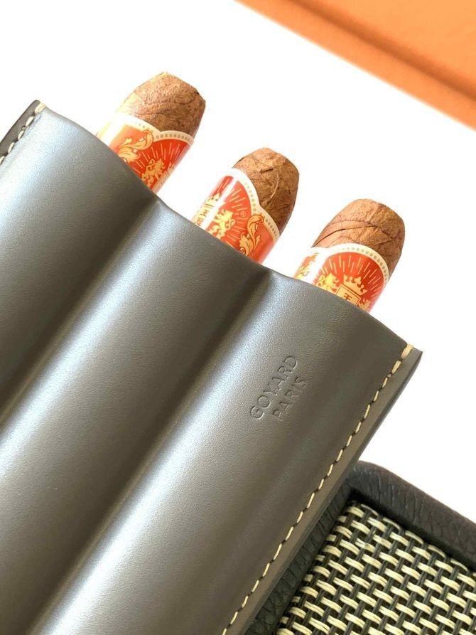 Churchill 3 cigarr fall görs med hjälp av en form för att skapa den perfekta formen för tre cigarrer, i synnerhet tre Robusto cigarrer. Finns i 3 storlekar för 1, 2 eller 3 cigarrer, de är den perfekta presenten för alla cigarr rökare.