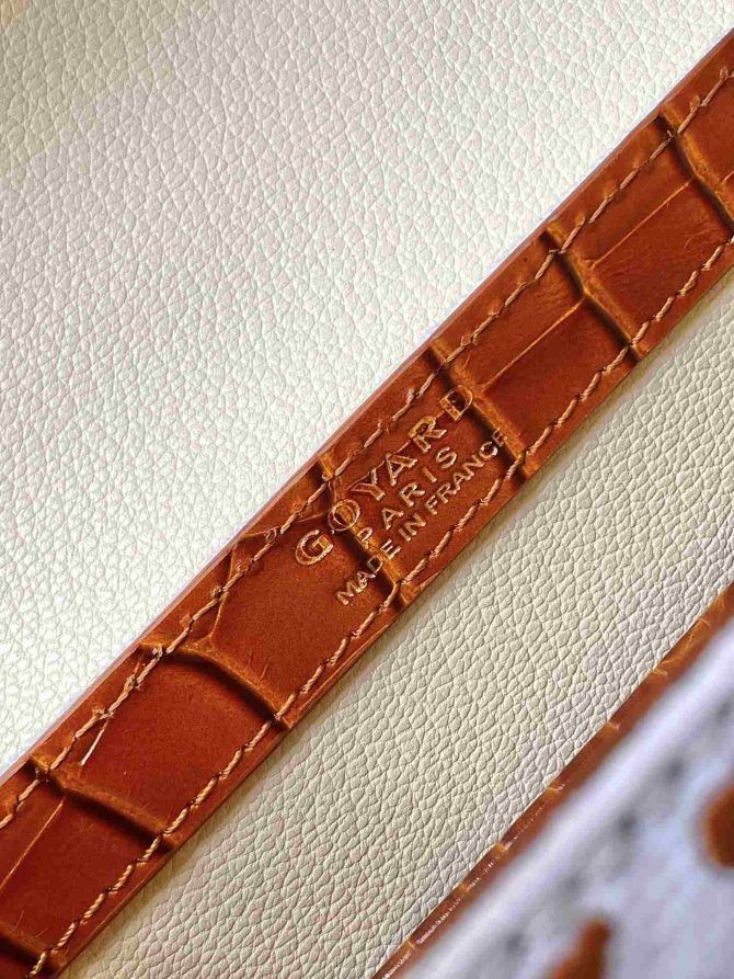 Den Saïgon väska är en av Maison Goyard symboliska bitar som ärver alla våra stam-gör signatur koder som trä batonger, läder hörn och bål nitar. I denna strukturerade, miniatyr format, Saïgon påsen kan bäras med eller utan rem för en chic och elegant stil.