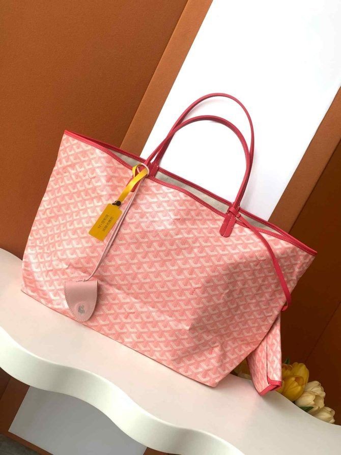 Saint Louis GM väska är tillverkad av Goyardine och är ofodrad. Det är extremt lätt och fullständigt reversibla. Bär det visar Goyardine tyg eller inifrån och ut, som visar linne och bomull blandning. Dess två läder handtag med sina progressiva tjocklek betyder den kan bäras på olika sätt. Den har en avtagbar ficka inuti ansluten till en av de handtag för snabb och enkel åtkomst.