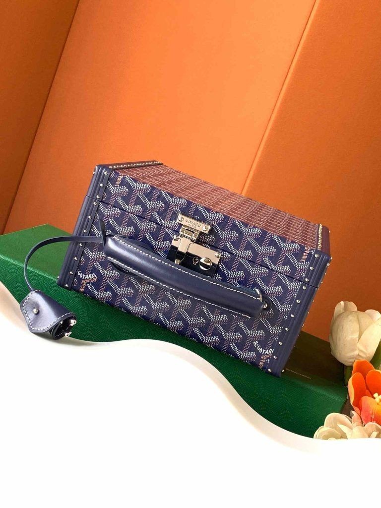 Joux kılıfı, Maison Goyard için çok değerli olan bagaj yapım uzmanlığı ile tasarlanmış 6 saat için bir kılıftır. Gövde versiyonundaki saat kasalarımızdan ve 4 ile 8 saat kasası arasındaki ara boyuttan esinlenmiştir.