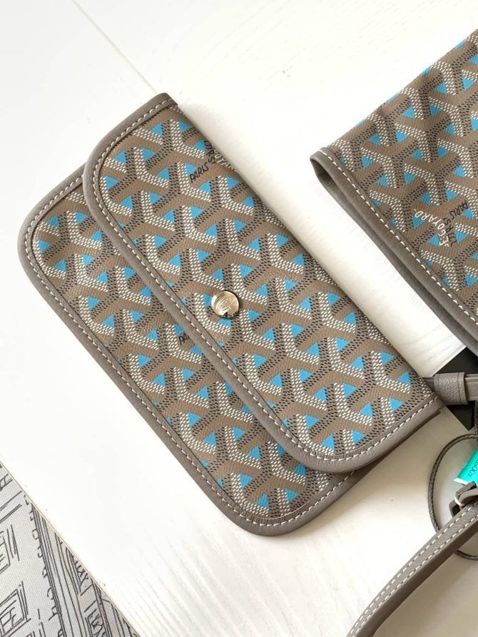 2023'te Saint Louis PM çantası, yeni bir özel Goyardine Claire-Voie Grege tuvalinde sınırlı sayıda sunuluyor. İç kaplamalı kanvas ve ayırt edici dış üçgenler aynı renktedir ve bu da torbanın içinden görülebileceği yanılsamasını yaratır. 3 renk mevcuttur: Haki, Turkuaz ve Pudra Pembesi. Son derece hafif ve tamamen tersine çevrilebilir olan Saint Louis PM çantası, farklı şekillerde giyilmesine izin veren aşamalı kalınlığa sahip iki deri tutamağa sahiptir. İçeriğine hızlı ve kolay erişim için tutamaklardan birine tutturulmuş çıkarılabilir bir iç cebe sahiptir.