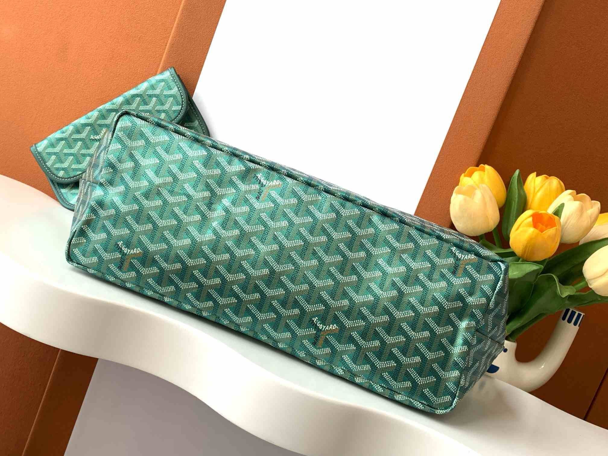 Saint Louis PM çantası Goyardinden yapılmıştır ve astarsızdır. Son derece hafif ve tamamen tersine çevrilebilir. Goyardin kumaşı göstererek veya keten ve pamuk karışımını göstererek tersyüz ederek giyin. İlerleyen kalınlığına sahip iki deri sapı, farklı şekillerde giyilebileceği anlamına gelir. Hızlı ve kolay erişim için tutamaklardan birine tutturulmuş çıkarılabilir bir iç cebe sahiptir.
